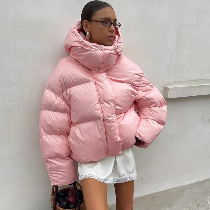 Pink Hooded Cotton Jacket Winter New Arrival Thickened Puffer Coat Warm Cotton Jacket