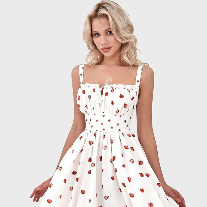 Floral Print Spaghetti Strap Dress Summer New Arrival Low Neckline with Tie Detail High-Waisted Split Hem High-Waisted Printed Dress