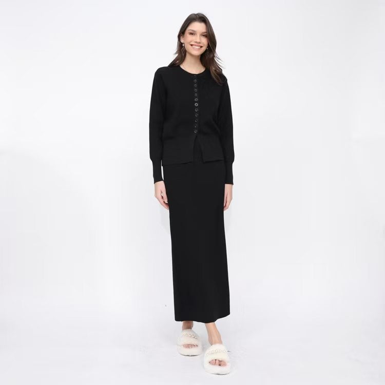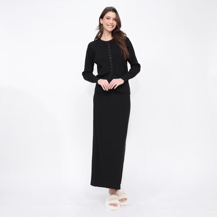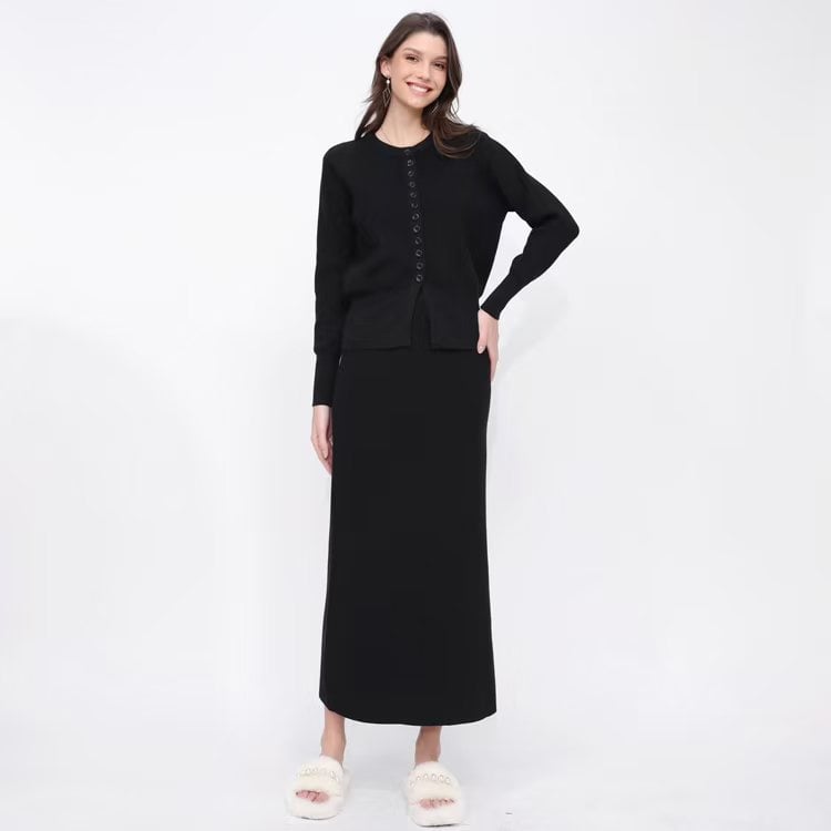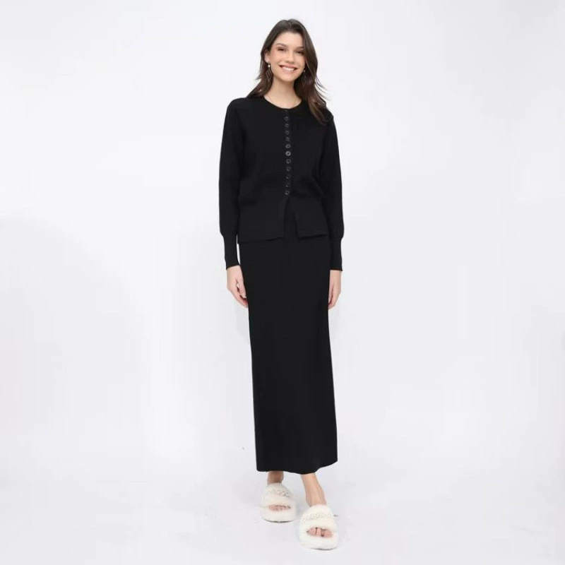 European Collection Fall/Winter Chanel-Style Cardigan & Skirt Set Long Knit Dress & Skirt Two-Piece Set Soft Knit Dress & Skirt Gentle Outfit Complete Set