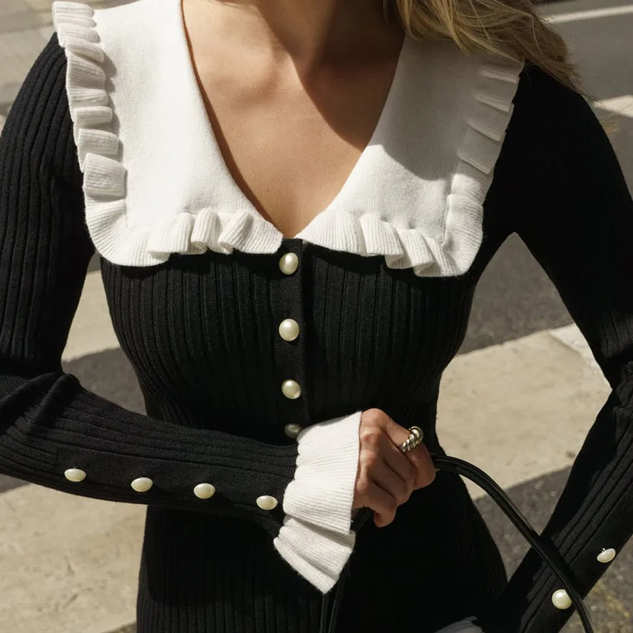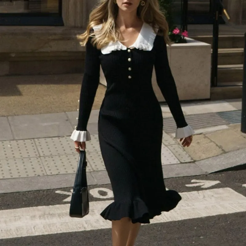 Lace-trim Dress Knit Skirt Fall/Winter New Arrival Wool Dress Vintage Lady European & American Cross-border French Style Dress for Women