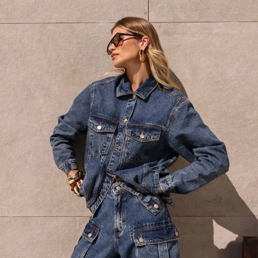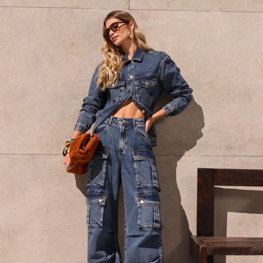Retro Navy Denim Jacket for Women New Fall Style Lapel Jacket Loose-Fit Denim Jacket for Women