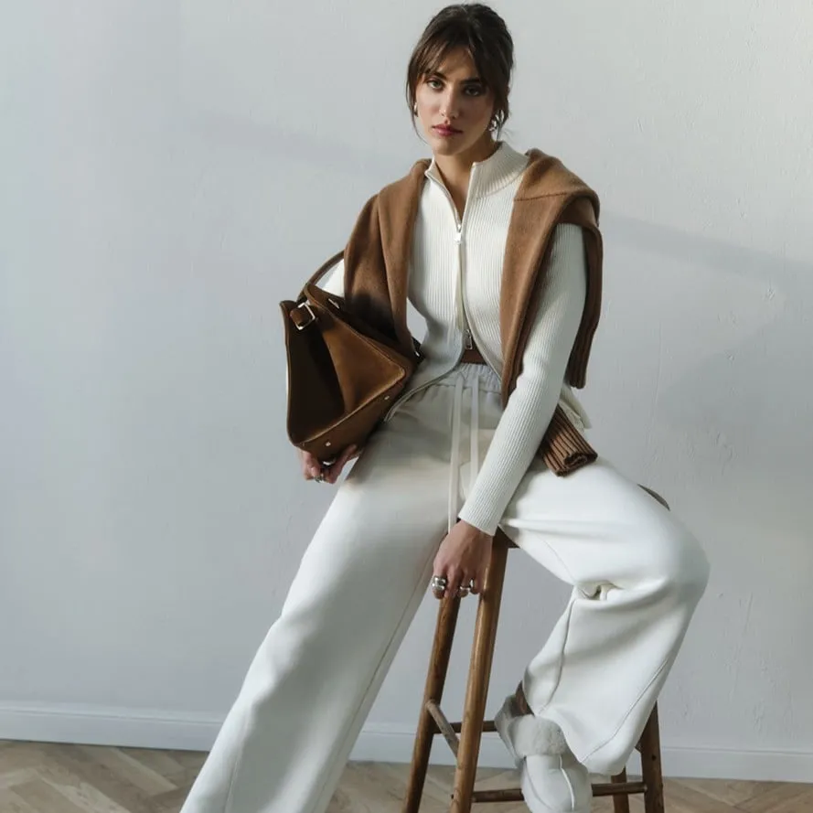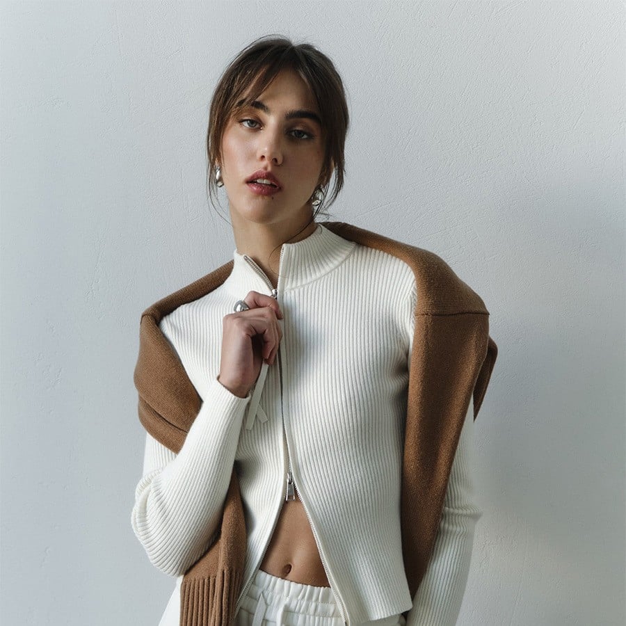 Stand Collar Slim-Fit Long-Sleeve Cardigan New Autumn/Winter Style Double-Zip Cardigan Warm Knit Jacket for Women