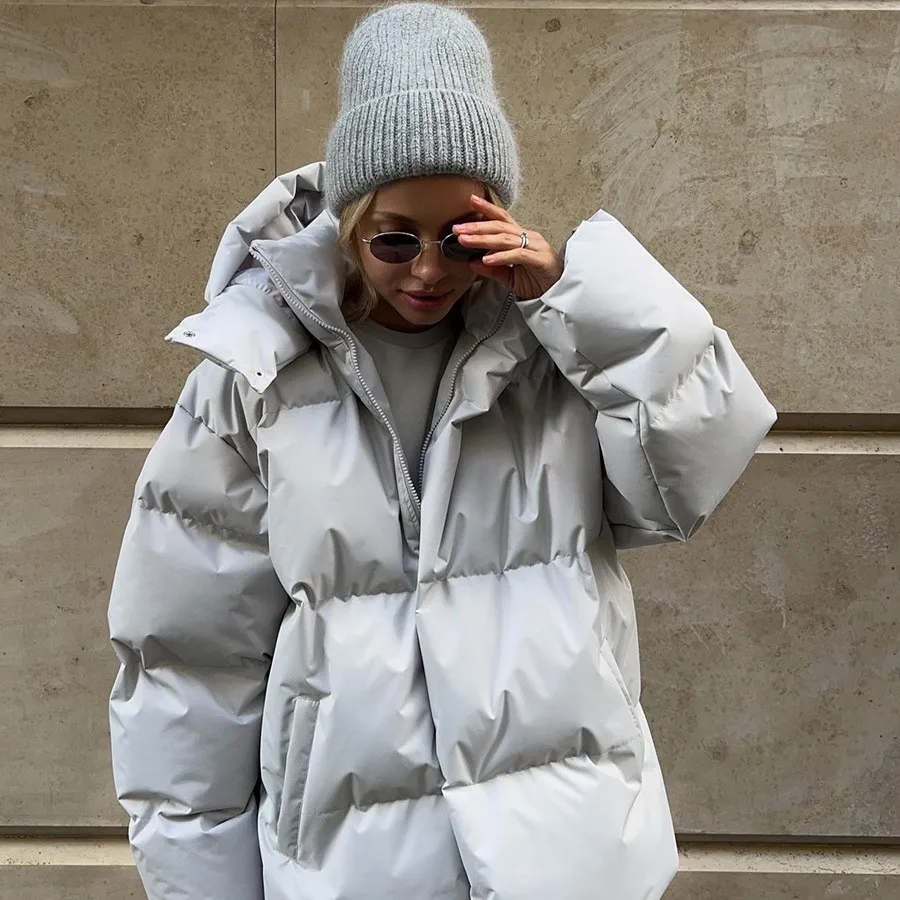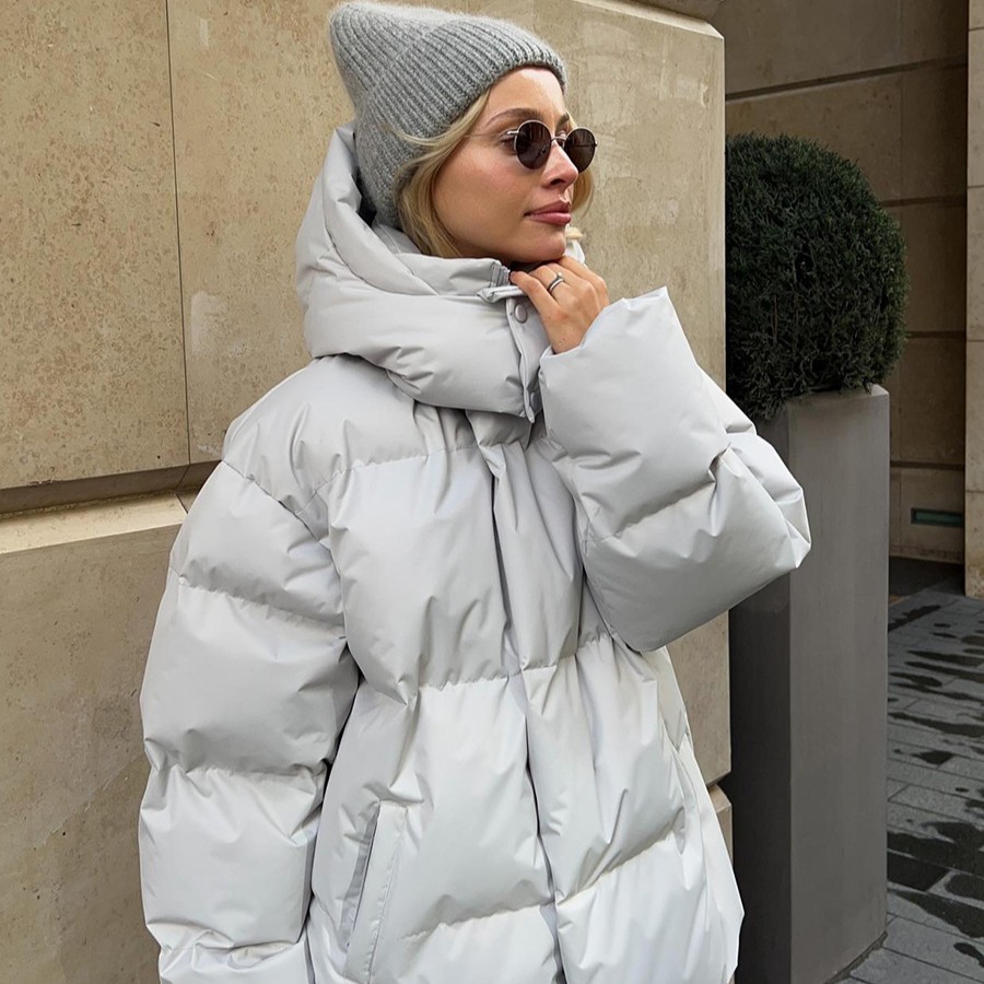 Winter New Arrival Cotton Coat Loose-Fit Cotton Jacket Solid-Color Hooded Cotton Jacket